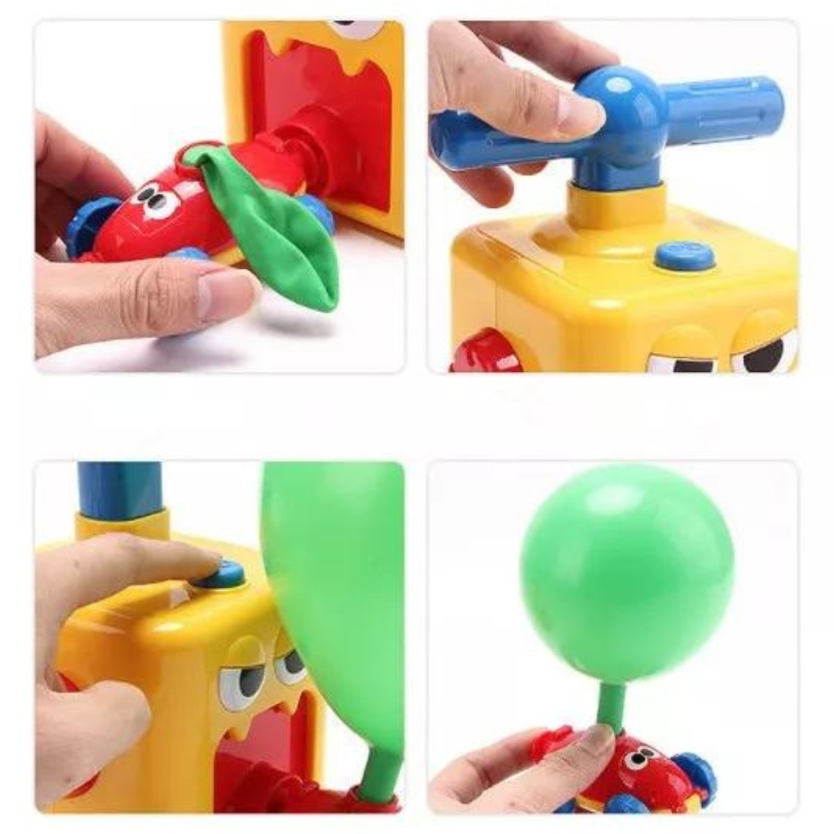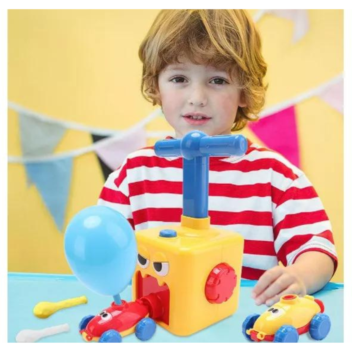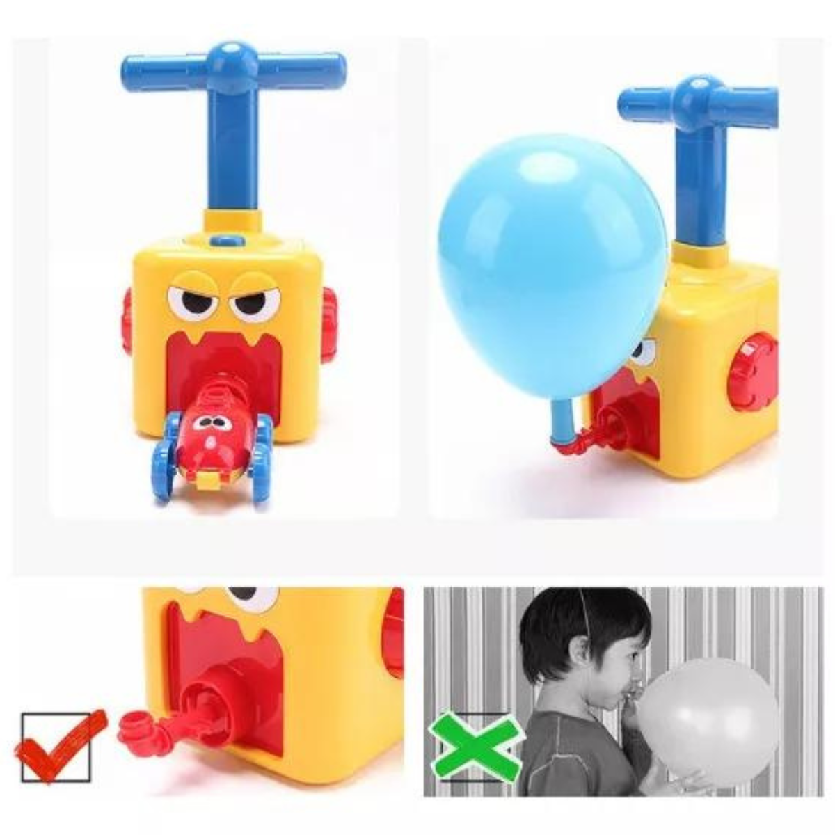 – Impulsados por Globos: ¡Sin baterías ni cables! Simplemente infla un globo, colócalo en el coche y listo para la carrera. Una manera divertida y ecológica de disfrutar de la velocidad.