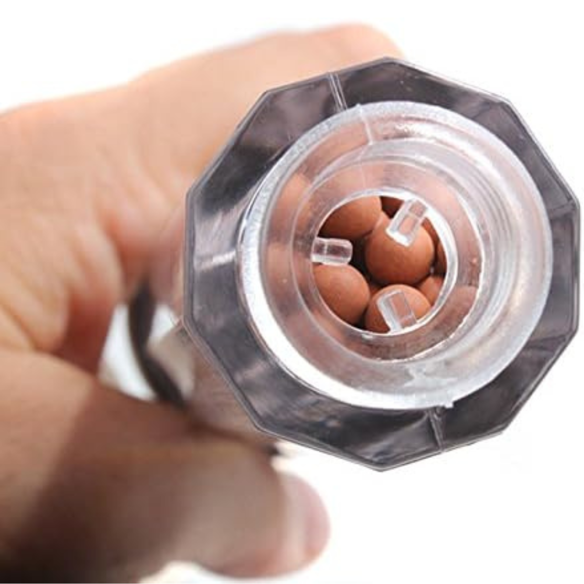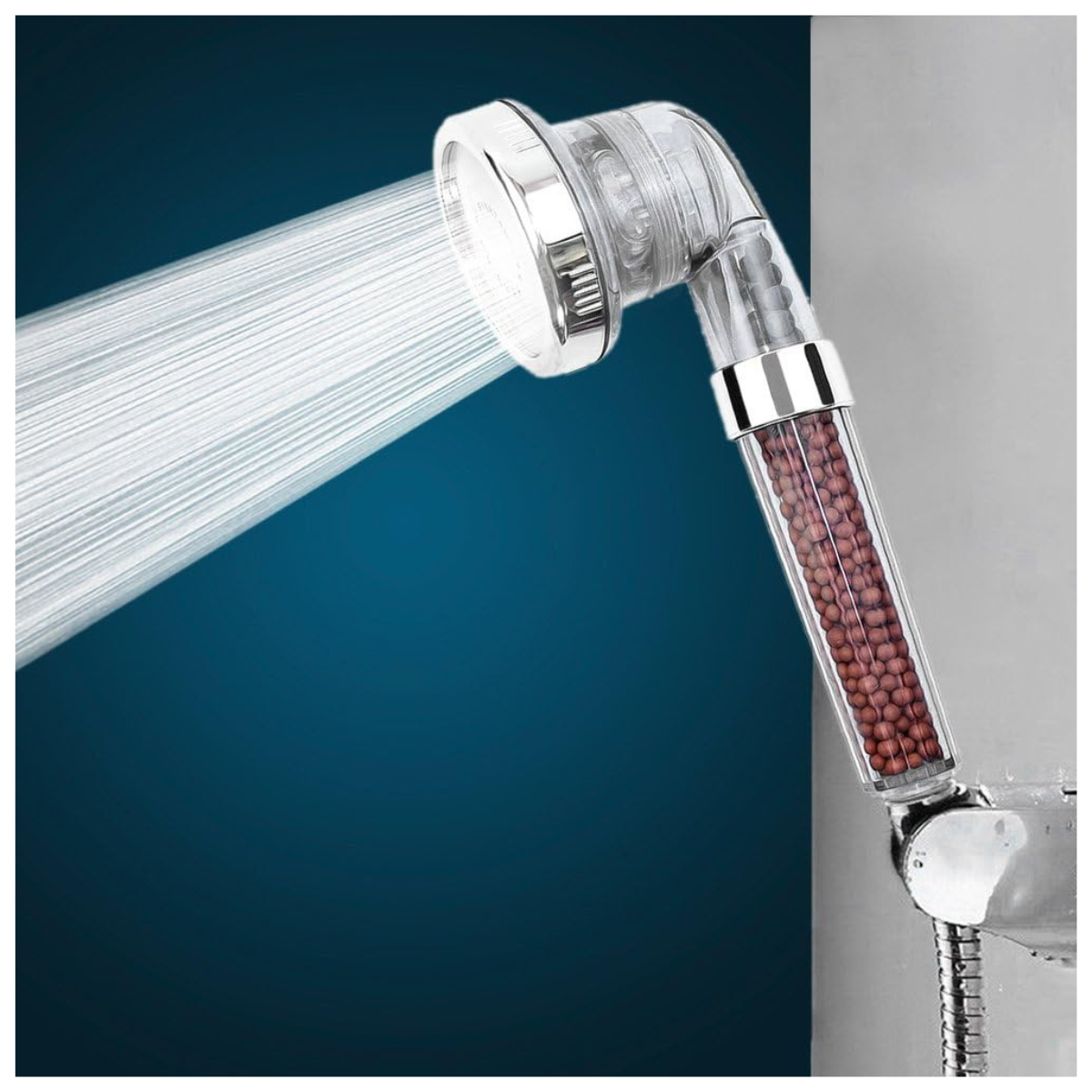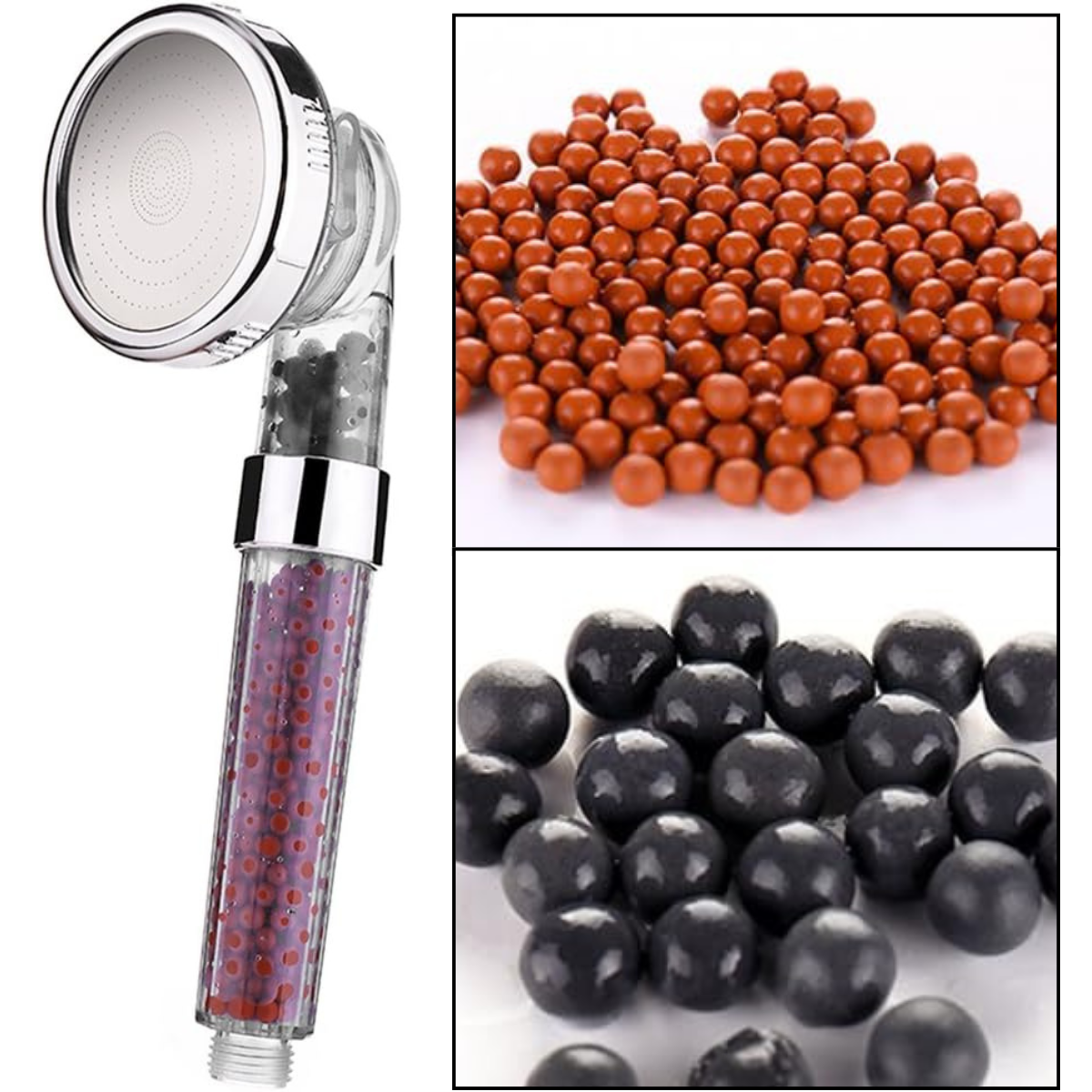 – Piedras de Filtro Mainfan: Equipado con piedras de filtro mainfan (rojas) y turmalina (grises), este cabezal de ducha elimina más del 98% del cloro, suavizando la piel, restaurando el equilibrio natural de la piel.
