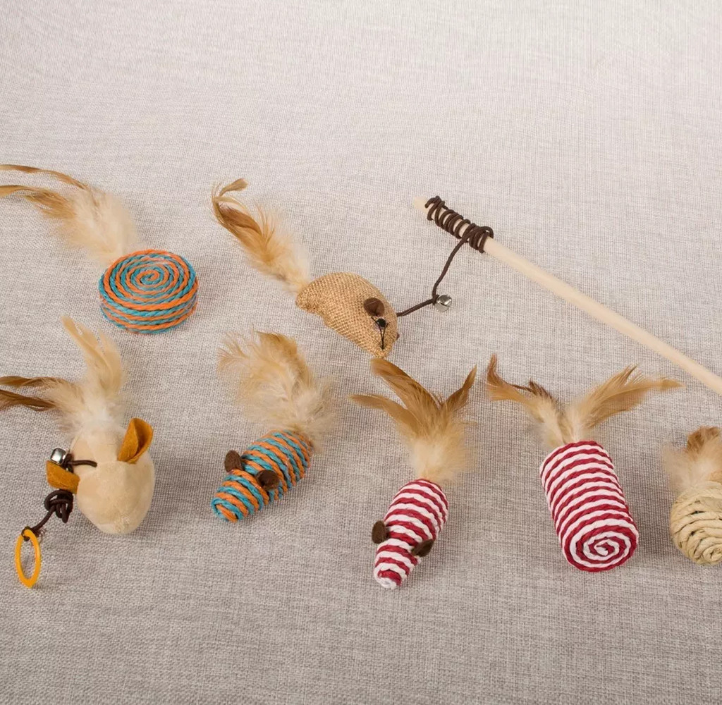 Este set de 7 días ayudará a tu gato a hacer ejercicio y mantenerse activo. El material de sisal hace que los ratones