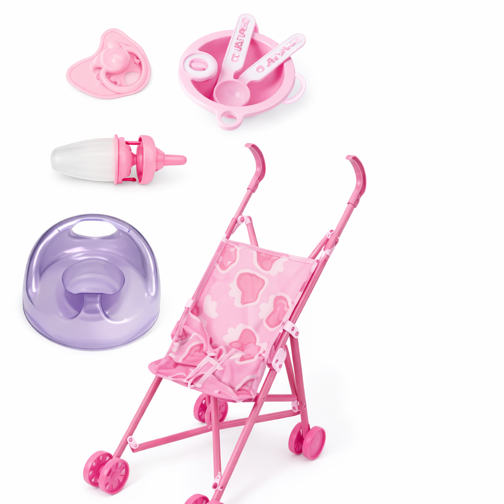 Muñeca Bebe + Coche Muñeca Y Accesor
