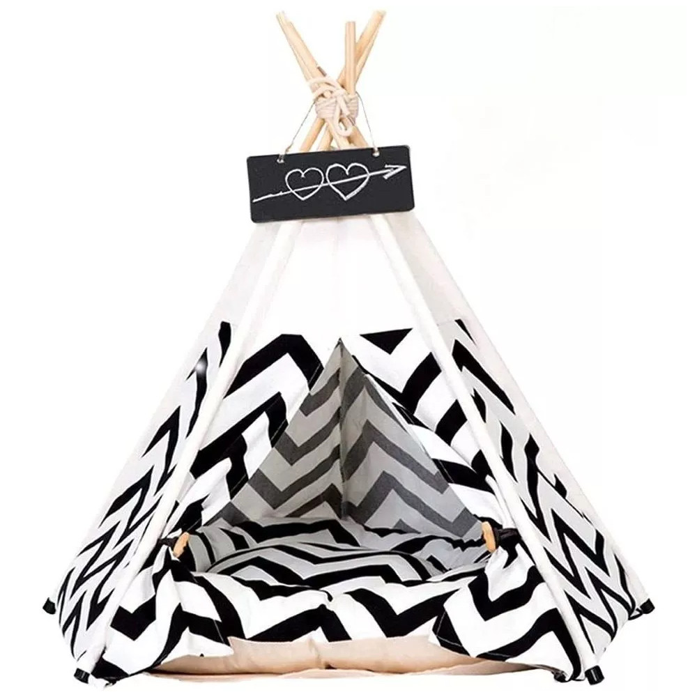 Tienda de campaña tipi para mascotas para perros, cama para gatos y cachorros, lona blanca para perros, bonita casa para mascotas, tipi para mascotas con cojín de 24 pulgadas para interiores y exteriores